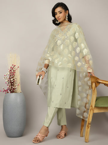 Mehendi Green Zardozi Embroidered Festive Kurta Set With Dupatta