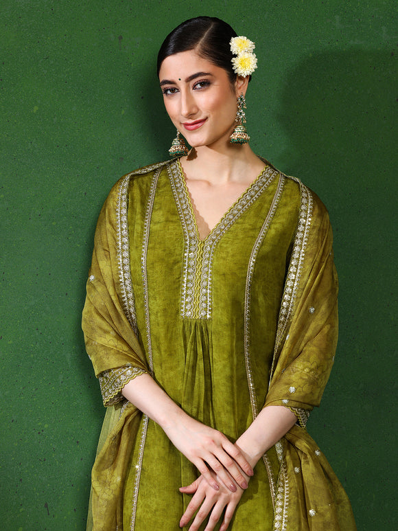Floral Embroidered A-Line Organza Kurta & Trousers Sets