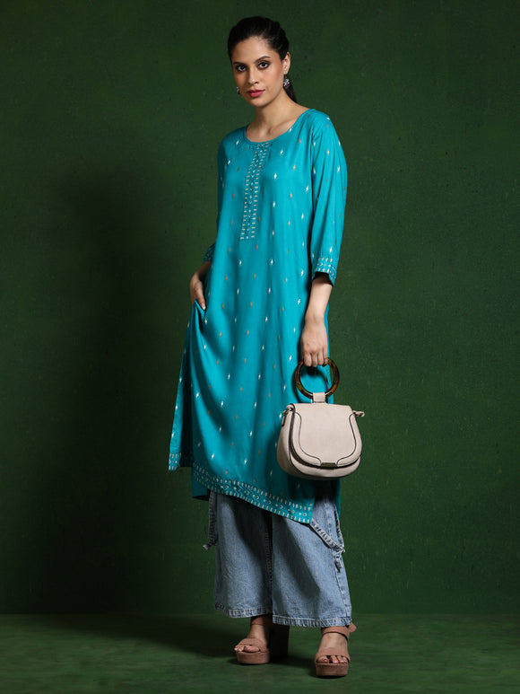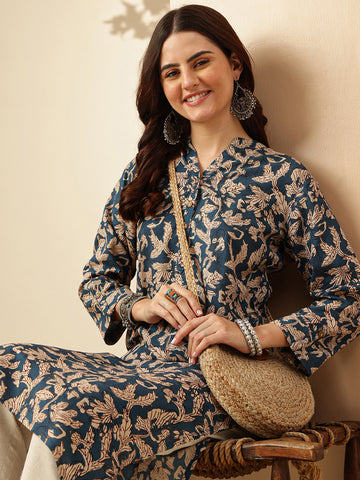 Floral Embroidered Straight Pure Cotton Kurta