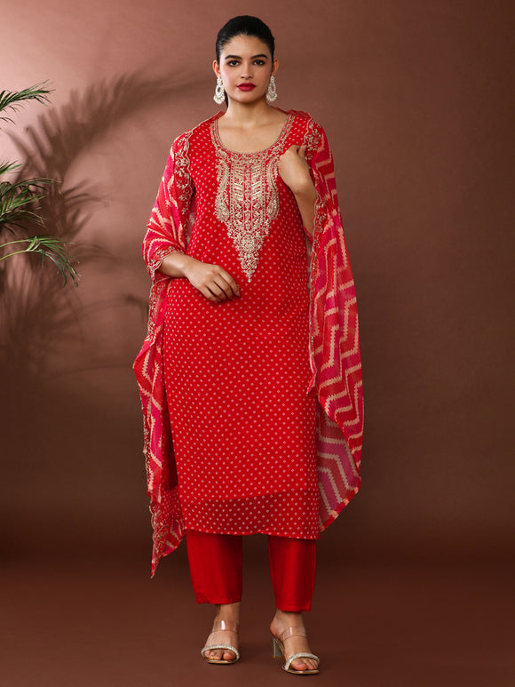 Bandhani Embroidered Silk Blend Kurta & Trousers Sets