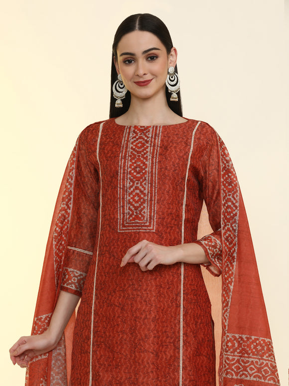 Printed Ethnic Motifs Kurta Sets With Poly Chiffon Dupatta