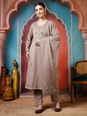Floral Embroidered Straight Winter Wear Kurta & Trousers Sets