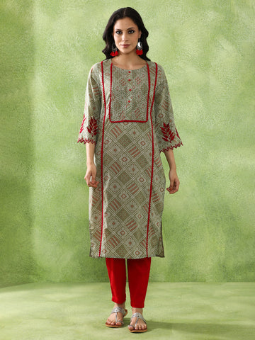 Bandhani Embroidered Straight Pure Cotton Kurta