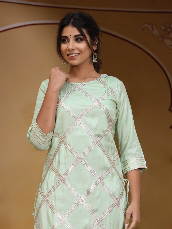 Amaiva Piping Detailed Straight Kurta With Solid Chanderi Pant