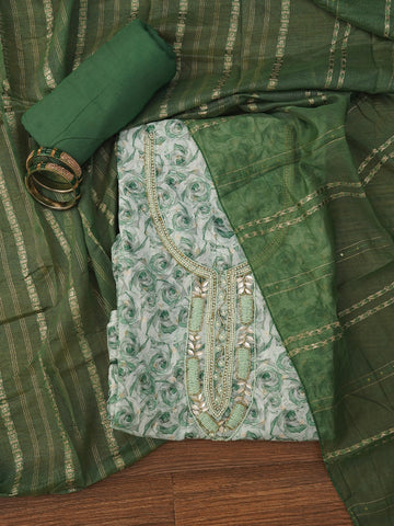 Unstitched Printed Green Pure Cotton Dress Material With Dupatta