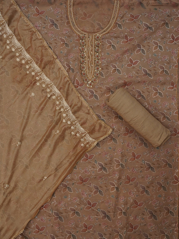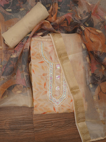 Beige Sequin Embellished Organza Printed Dress Material with Dupatta