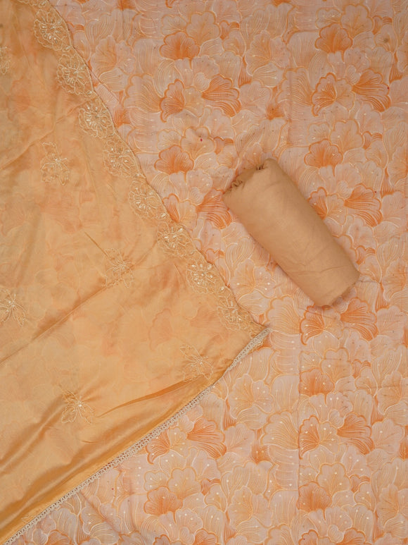 Beige Unstitched Embroidered Cotton Blend Dress Material With Dupatta