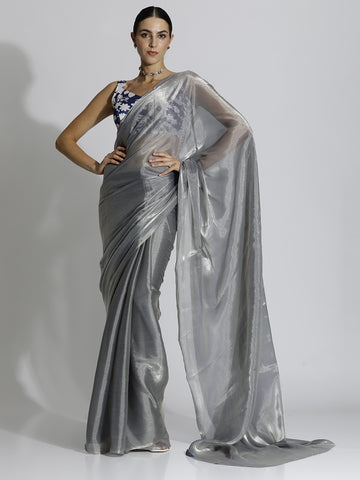 Grey Festive Silk Blend Zari Woven Dress Material With Dupatta