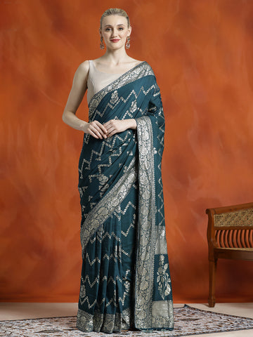 Heavy Banarasi Zari Woven Silk Blend Pista Green Saree