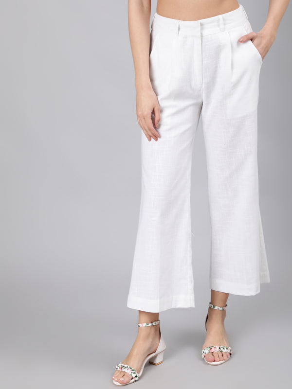 White Cotton Slub Straight High Rise Bottom-Fold Pants Sale price₹ 659 Regular price₹ 1,949Save 66%