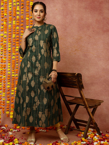Green Plus Size Woven Ethnic Print Embroidered Flared Laced Kurta With Printed Palazzo