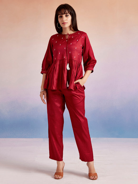 Maroon Self Weave Embroidered Co-ord Set Sale price₹ 4,269 Regular price₹ 6,999Save 39%