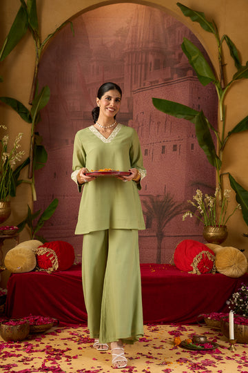 Green Color Poly Slub Embellished Co-Ord Set Has Top And Trouser Sale price₹ 1,069 Regular price₹ 3,049Save 65%