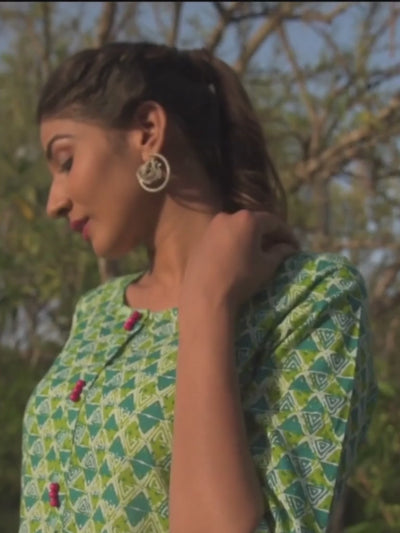 Green & Blue Geometric Print Straight Cotton Kurta Sale price₹ 779 Regular price₹ 1,649Save 53%
