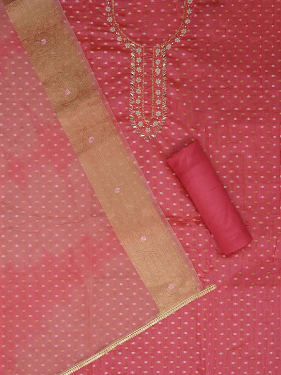 Pink Cotton Woven Design Embellished Dress Material with Dupatta Sale price₹ 2,009 Regular price₹ 5,399Save 63%