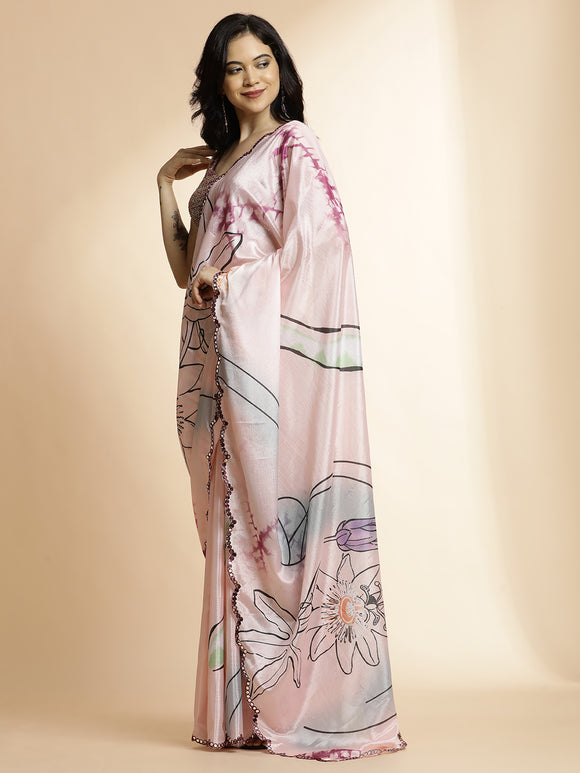 Pink Mirror Work Satin Floral Saree Sale price₹ 1,839 Regular price₹ 4,899Save 62%