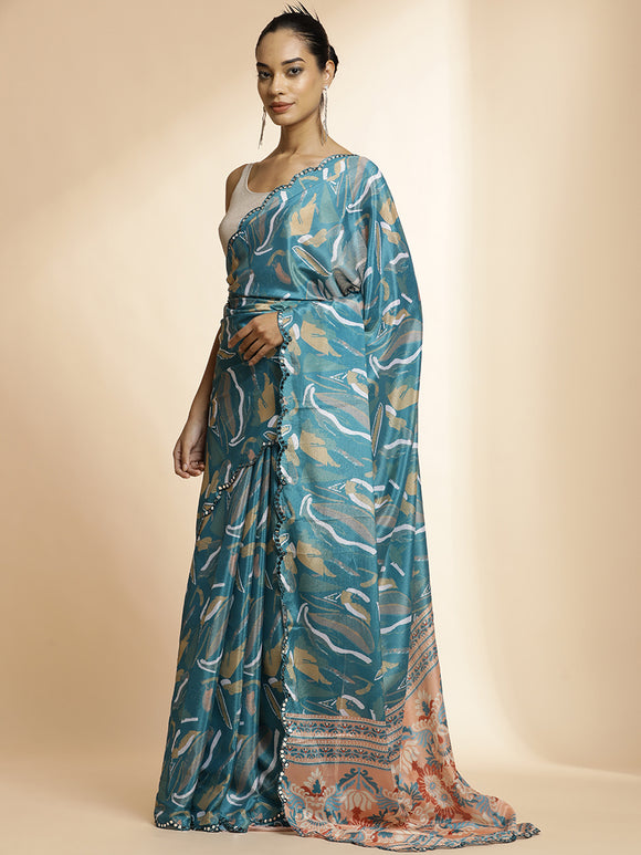 Sky Blue Floral Printed Mirror Work Satin Saree Sale price₹ 1,839 Regular price₹ 4,899Save 62%