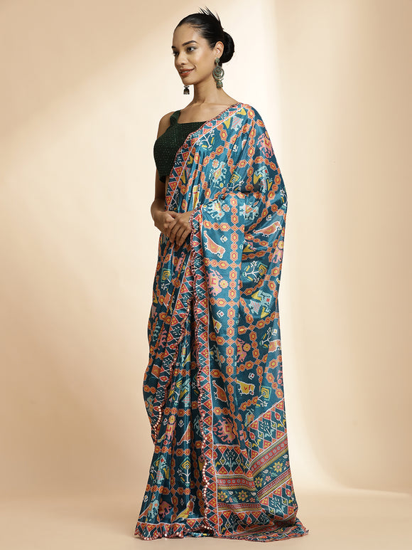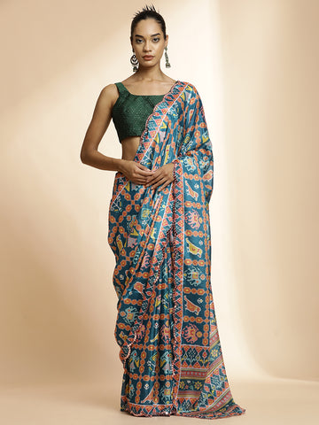 Pure Georgette Patola Mirror Teal Tie-Dye Saree Sale price₹ 1,319 Regular price₹ 3,399Save 61%