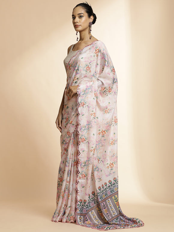 Cream Floral Printed Mirror Work Satin Saree Sale price₹ 1,839 Regular price₹ 4,899Save 62%