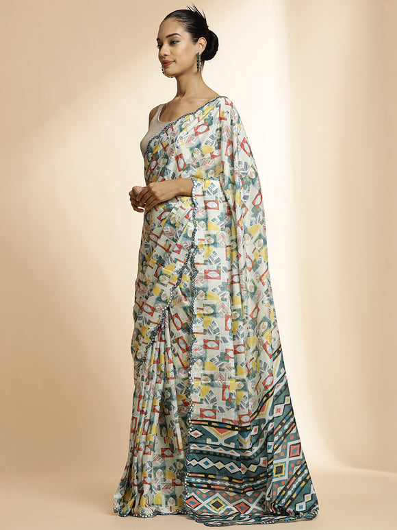 Multicolor Geometric Printed Mirror Work Satin Saree Sale price₹ 1,839 Regular price₹ 4,899Save 62%