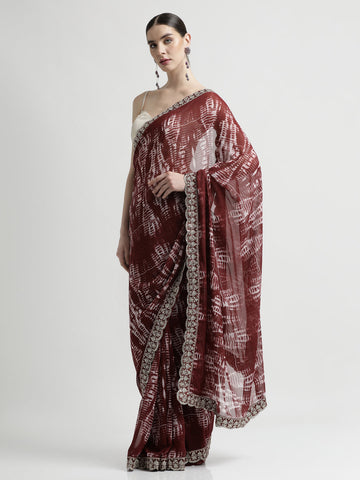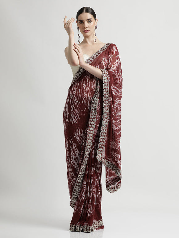 Maroon Sequin Embroidered Pure Georgette Tie Dye Saree Sale price₹ 1,459 Regular price₹ 3,799Save 62%