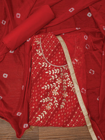 Red Unstitched Cotton Bandhani Printed Dress Material With Dupatta Sale price₹ 2,009 Regular price₹ 5,399Save 63%