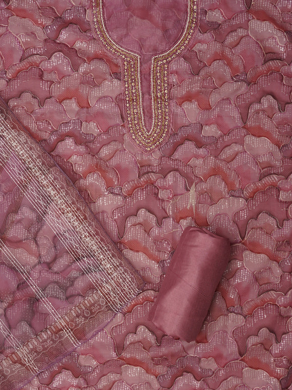 Pink Festive Embellished Organza Dress Material with Dupatta