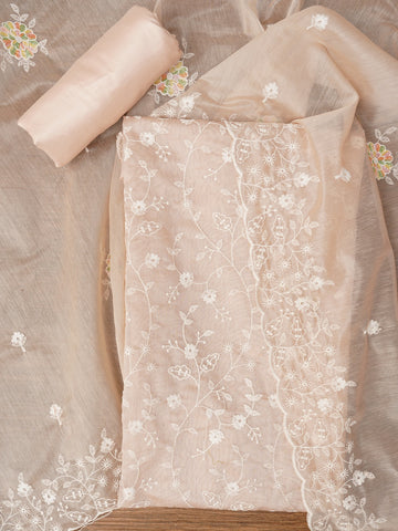 Beige Unstitched Embroidered Cotton Blend Dress Material With Dupatta