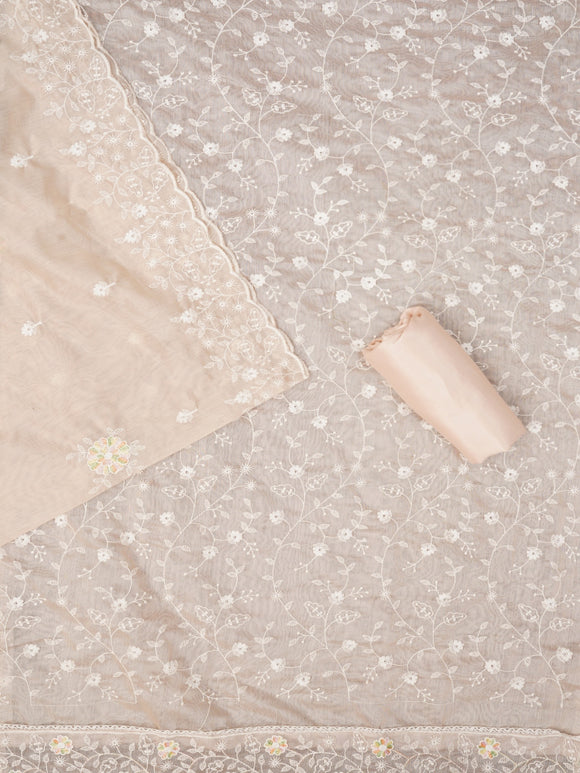 Peach Floral Embroidered Organza Dress Material with Dupatta