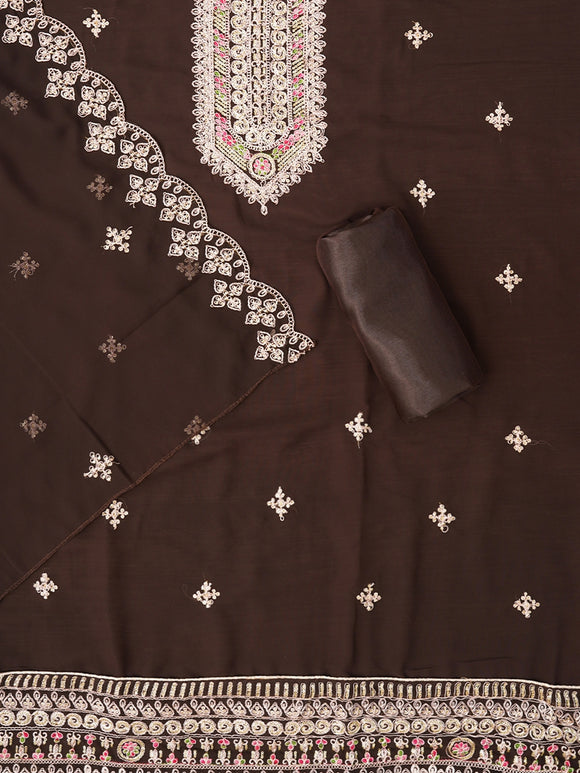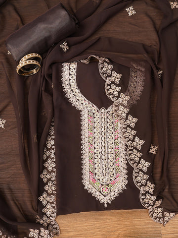 Brown Zari Embroidered Silk Georgette Dress Material with Dupatta