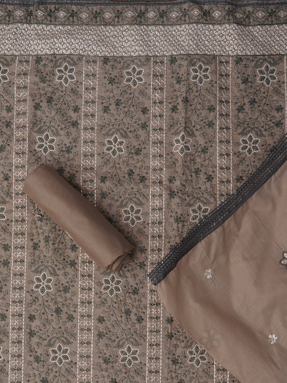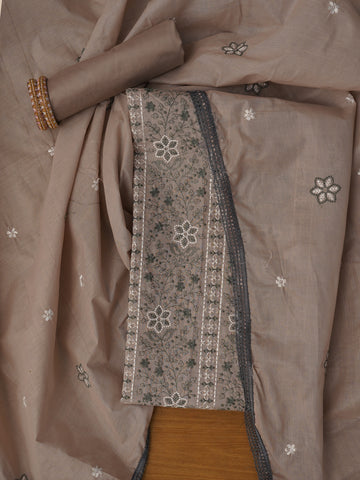 Grey Unstitched Embroidered Pure Cotton Dress Material With Dupatta
