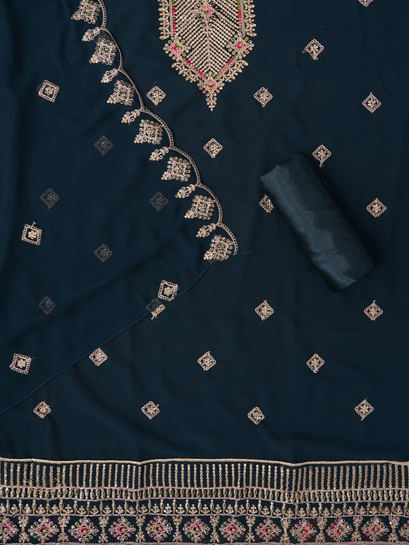 Teal Sequin Work Cotton Blend Dress Material with Dupatta