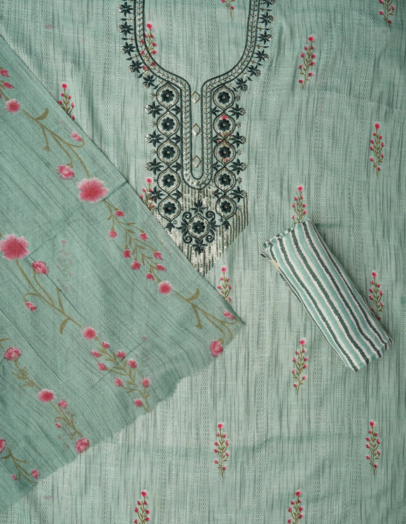 Green Embroidered Cotton Blend Dress Material with Dupatta