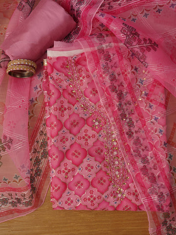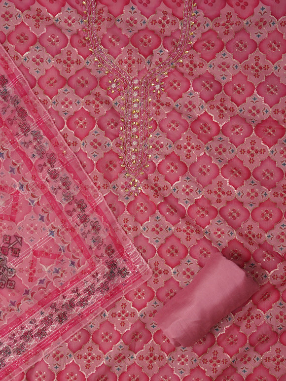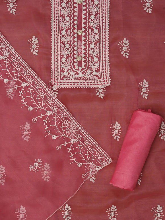 Unstitched Embroidered Organza Pink Dress Material With Dupatta