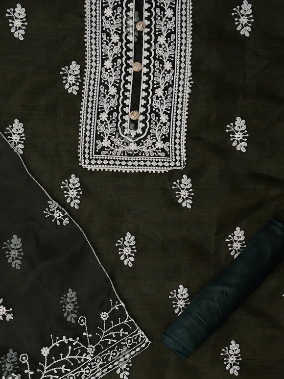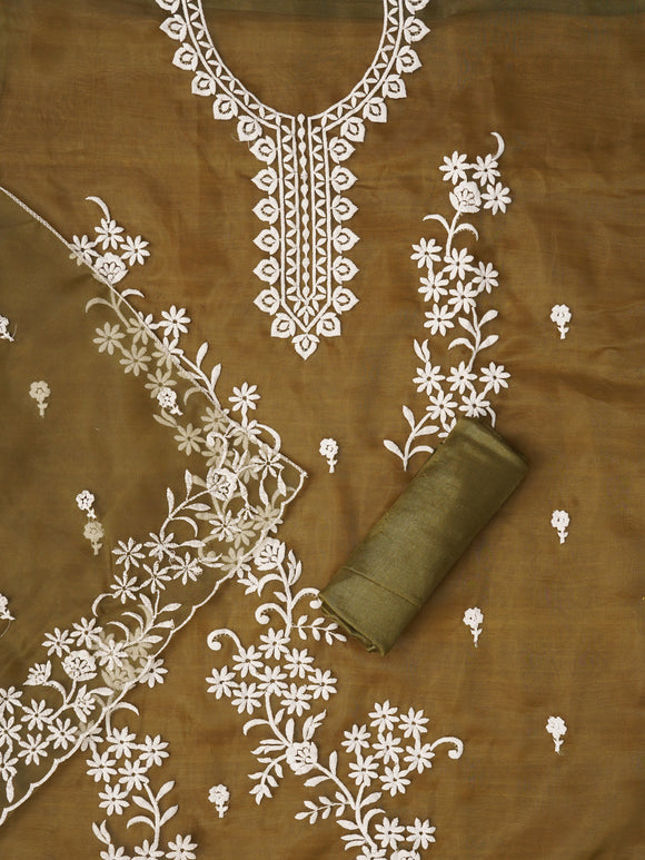 Mehandi Embroidered Organza Dress Material with Dupatta