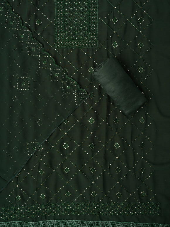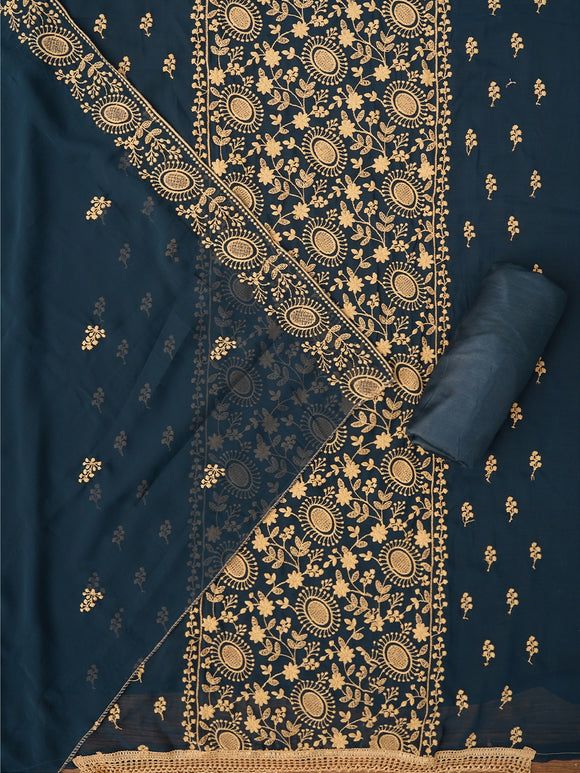Teal Sequin Embroidered Silk Georgette Dress Material with Dupatta