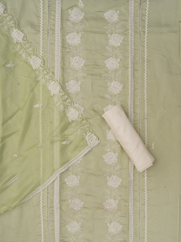Unstitched Green Embroidered Organza Dress Material With Dupatta