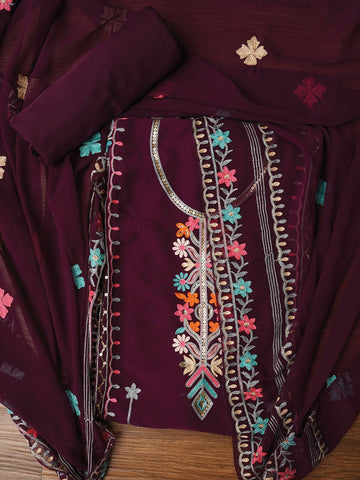 Purple Unstitched Silk Georgette Embroidered Dress Material With Dupatta