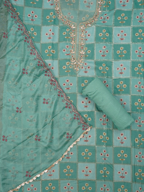 Sea Green Festive Embellished Organza Dress Material with Dupatta