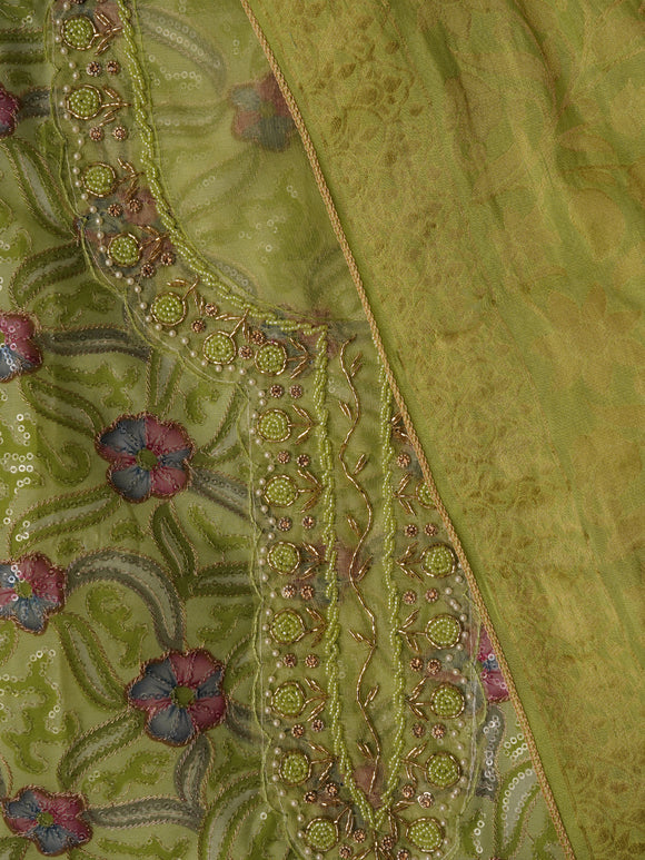 Green Sequin Embellished Organza Printed Dress Material with Dupatta