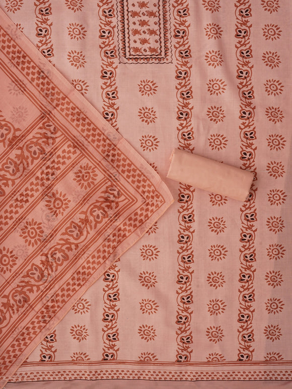 Pink Floral Printed Cotton Blend Dress Material with Dupatta