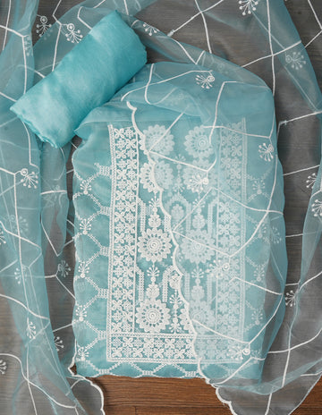 Teal Thread Embroidered Organza Festive Dress Material with Dupatta Sale price₹ 1,269 Regular price₹ 3,199Save 60%