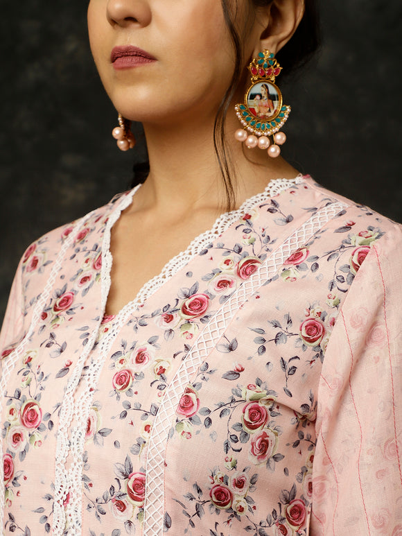 PINK ROSE PRINTED PAKISTANI KURTA WITH PALAZZO AND DUPATTA