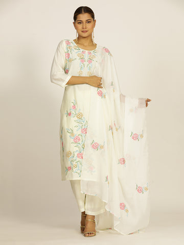 Off White Resham Embroidered Chanderi Festive Suit Set Sale price₹ 2,629 Regular price₹ 4,199Save 37%