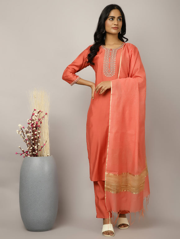 Silk Blend Coral Embroidered Suit Set Sale price₹ 1,149 Regular price₹ 3,599Save 68%