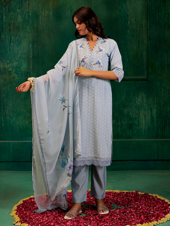 Blue Embroidered Cotton Schiffli Kurta Set With Dupatta Sale price₹ 2,749 Regular price₹ 4,399Save 38%