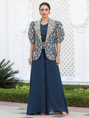 Zardozi Embroidered Silk Floral Printed Flared Kurta With Palazzo Sale price₹ 3,199 Regular price₹ 5,999Save 47%