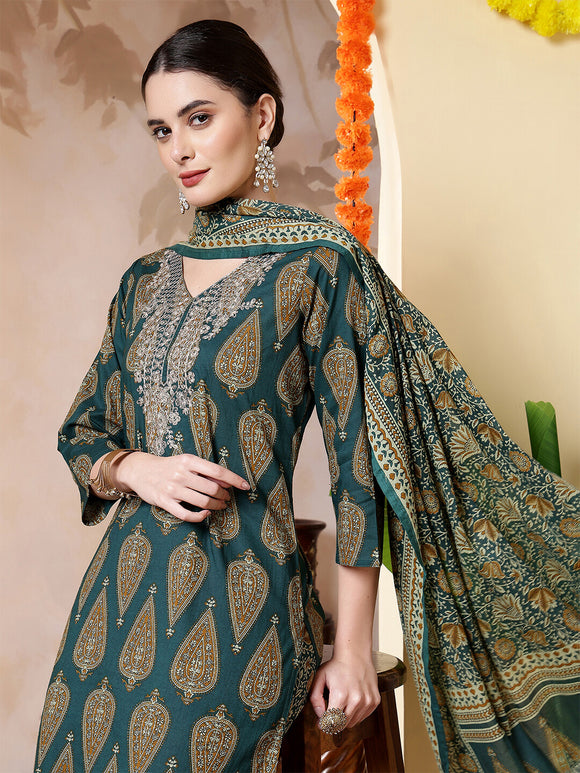 Floral Embroidered Straight Winter Wear Kurta & Trousers Sets