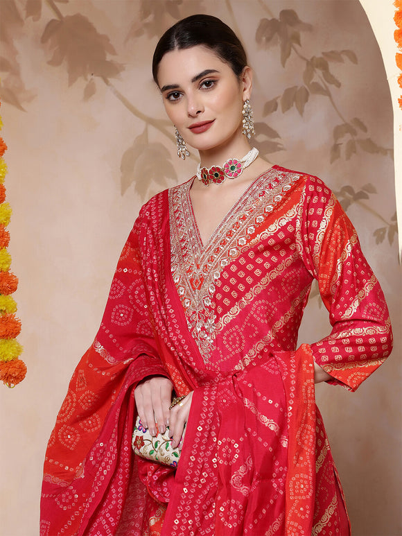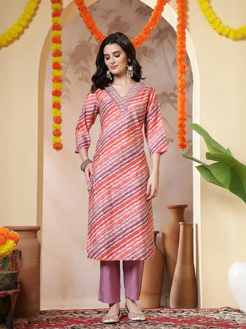Floral Printed Straight Silk Blend Kurta & Trousers Sets