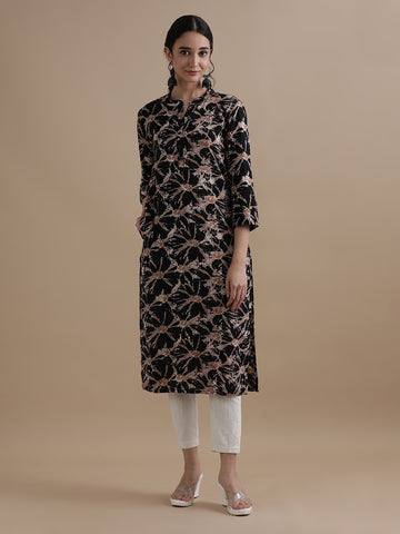 Floral Printed Straight Linen Kurta & Trousers Sets